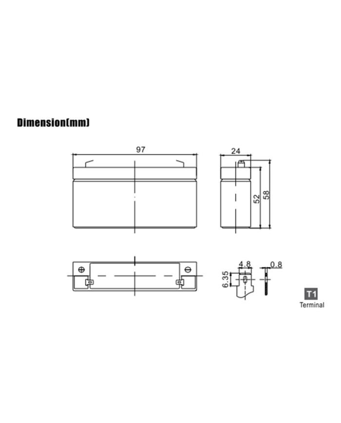 dim.: 97 x 24 x 52 x 58 (incl. terminale) 0,29 kg
