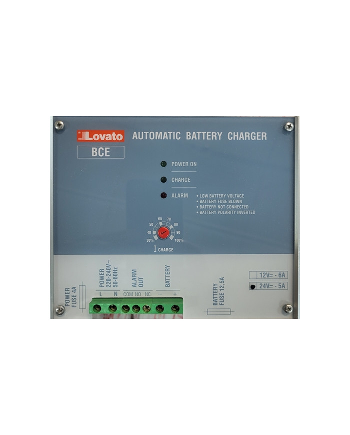 Carica batterie automatico, lineare serie BCE, per batterie al piombo, 1 livello di carica. Uscita 24VDC, 5A