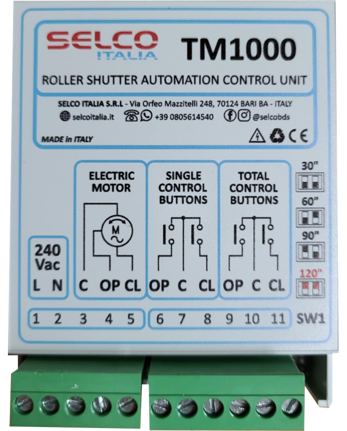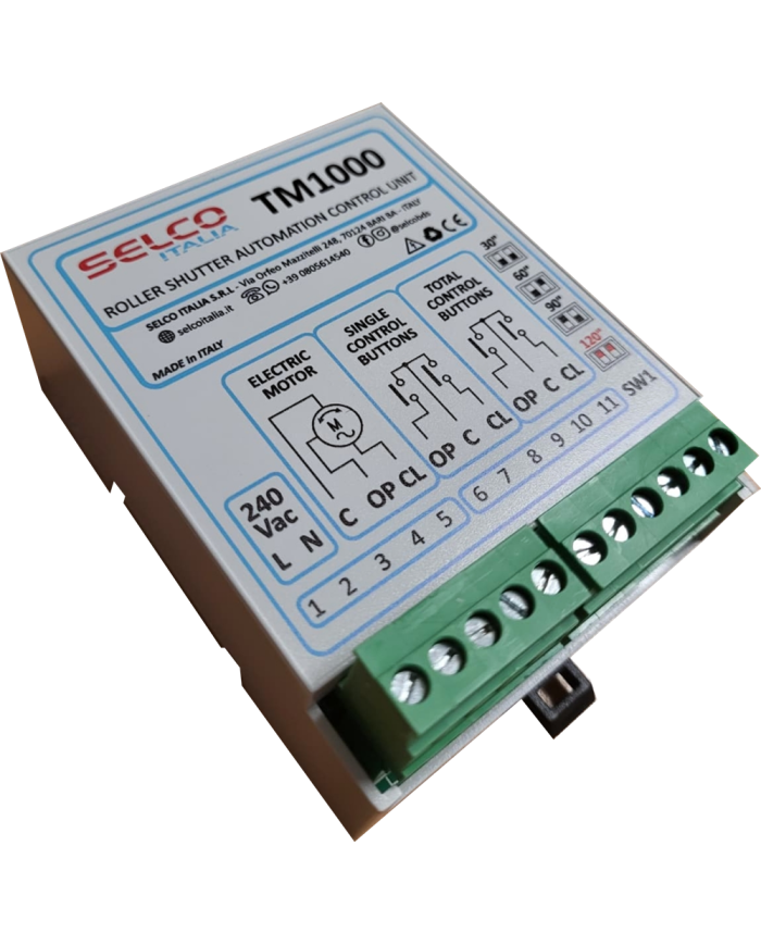 La centralina per automazione tapparelle TM1000 permette sia di comandare la singola tapparella attraverso il doppio pulsante posto in prossimita' della stessa che di centralizzare l'apertura e la chiusura di piu' tapparelle attraverso il doppio pulsante posto in uno o piu' punti appropriati.