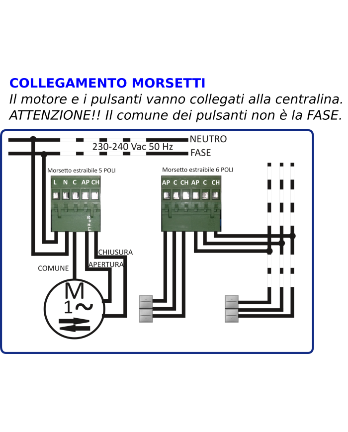 I morsetti estraibili ne consentono una facile manutenzione, mentre le ridotte dimensioni ne consentono una facile collocazione.Non e' necessario acquistare schede accessorie o contenitori per il fissaggio, ne' effettuare complicate programmazioni; la centralina e' pronta all'uso.