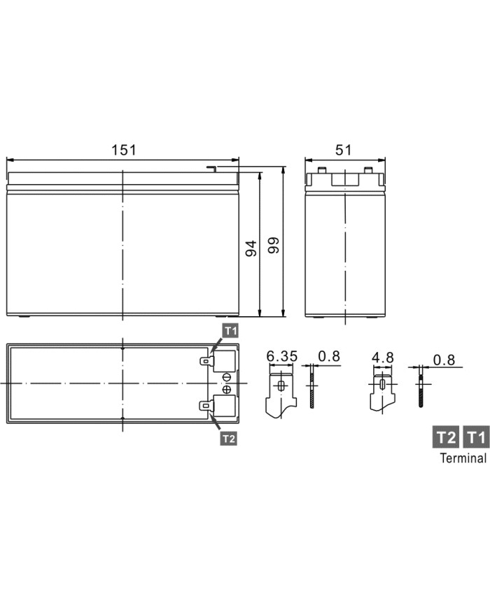 terminale positivo T2 - negativo T1