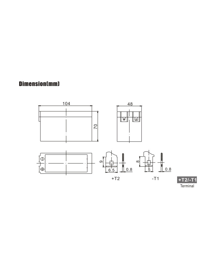 12 V 2,7 Ah applicazioni stand-by vita attesa 5 anni dim.: 104 x 48 x 70 x 70 (incl. terminale) 0,99 kg