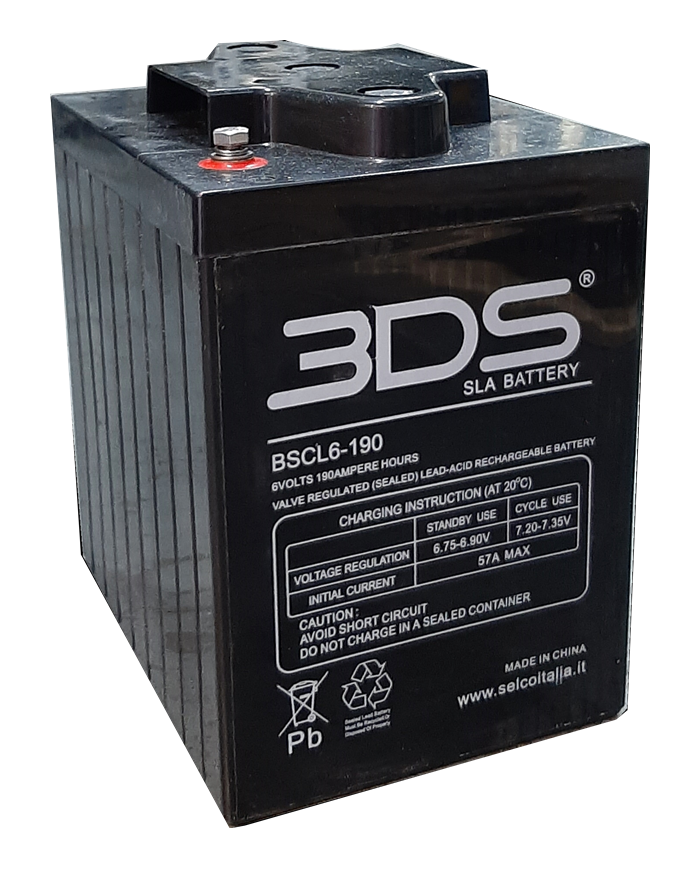 6 V 190 Ah applicazioni cicliche (auto e bici elettriche, sedie a rotelle) vita attesa 10 anni