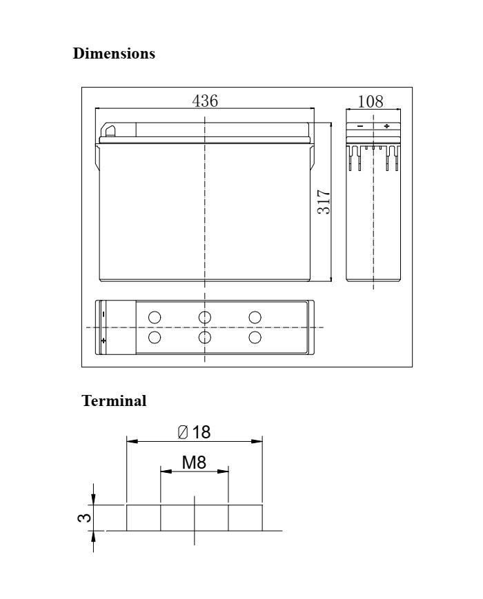12 V 125 Ah applicazioni settore telefonico vita attesa 12 anni dim.: 436 x 108 x 317 x 317 (incl. terminale) 40,5 kg