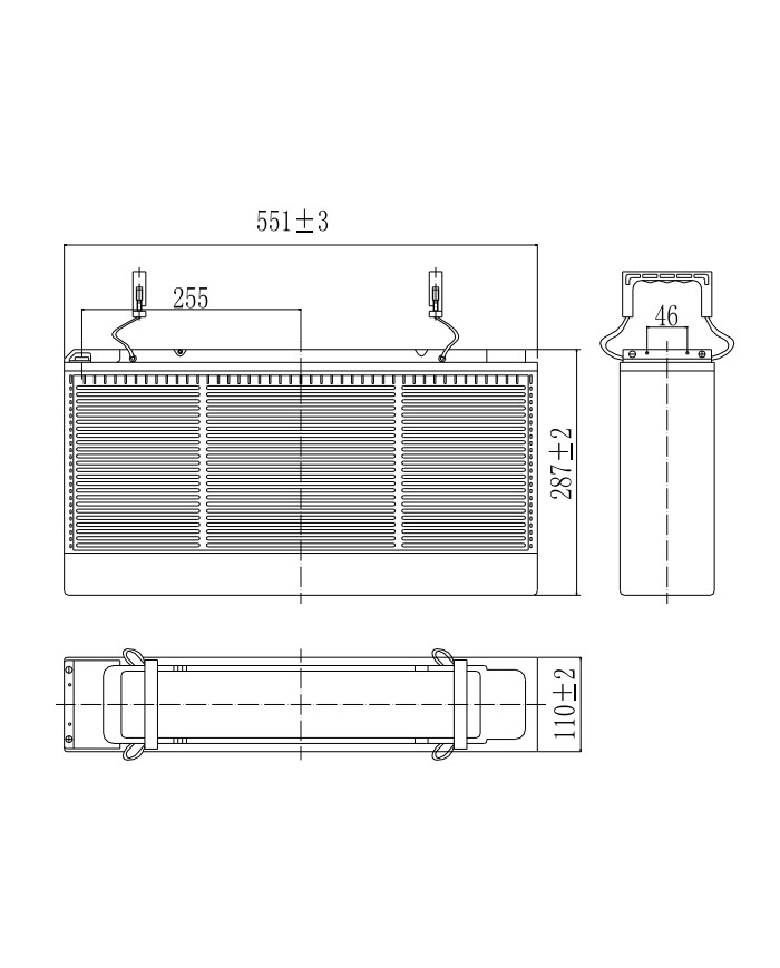 12 V 150 Ah applicazioni settore telefonico vita attesa 12 anni dim.: 551 x 110 x 287 x 287 (incl. terminale) 49 kg terminale T11