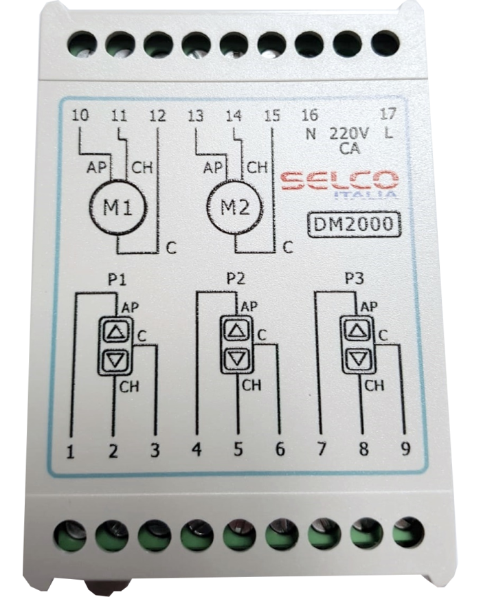 Funziona solo tenendo premuto il pulsante (funzione UOMO PRESENTE) e non ha nessuna funzione SMART. La tipica applicazione é quella in cui ci sono due tapparelle affiancate nella stessa stanza. Tuttavia è possibile abbinare più relè DM2000 per poter effettuare una centralizzazione semplificata.