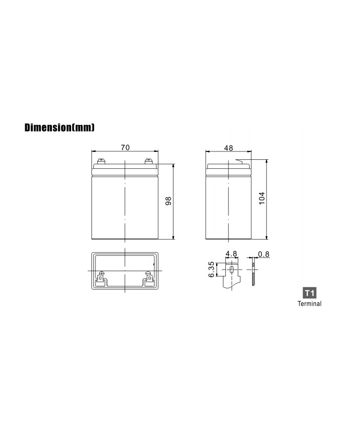 dim.: 70 x 48 x 98 x 104 (incl. terminale) 0,9 kg